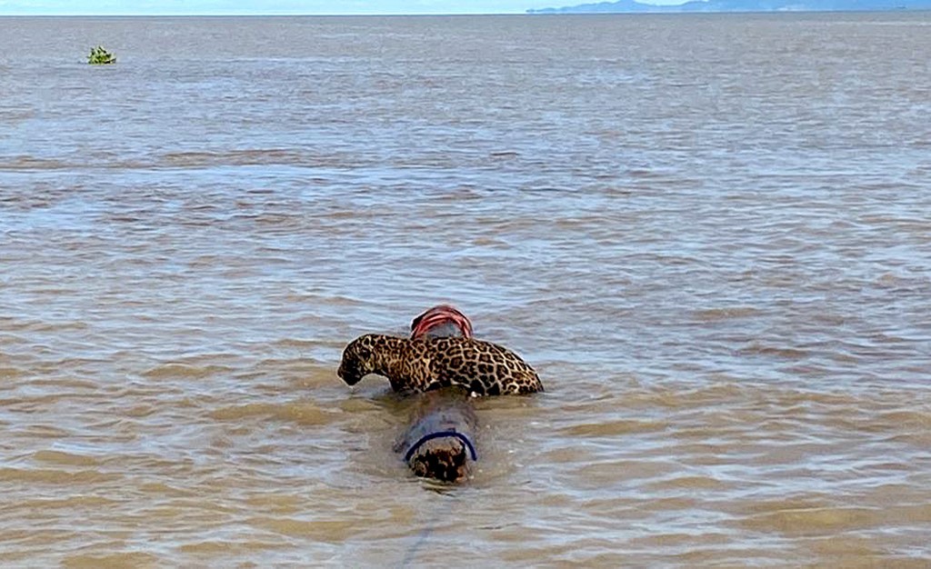 Animal foi avistado por pescadores. Salva-vidas o resgataram com um pedaço de madeira. Onça estava a cerca de 2 quilômetros da costa Marinha nacional da Colômbia/Via AFP Uma onça foi resgatada em alto mar na costa da Colômbia na segunda-feira (15). O animal estava a dois quilômetros da costa. Salva-vidas da Colômbia que resgataram a onça na água. Um grupo de pescadores tinha visto o animal de mar e avisou os guarda-costas. Leia também Aparecimento de onça-parda no Parque do Povo viraliza em redes sociais e mobiliza polícia e bombeiros em Presidente Prudente; veja VÍDEO Morre em Guaíra onça parda conhecida por mobilizar força-tarefa em zoológico após suspeita de câncer Onça se agarrou no tronco para ser resgatada na Colômbia Marinha nacional da Colômbia/Via AFP Eles amarraram um tronco flutuante a um barco para que o animal se agarrasse na madeira. O resgate durou cerca de uma hora. Depois disso, a onça foi levada para uma região de manguezais. De acordo com o jornal “El Espectador”, o animal estava nitidamente exausto e por isso decidiram resgatá-lo. Mapa mostra onde fica Turbo, na Colômbia g1 A onça está na categoria vermelha, de quase ameaçada, da União Internacional de Conservação da Natureza (IUCN, na sigla em inglês). Há acordos internacionais para a preservação da onça. O animal também habita em grandes porções do Brasil, como se vê no mapa da IUCN abaixo. Mapa da IUCN mostra as regiões onde a onça vive Reprodução/IUCN A tentativa de se reintroduzir a onça-pintada na Argentina Veja os vídeos mais assistidos do g1